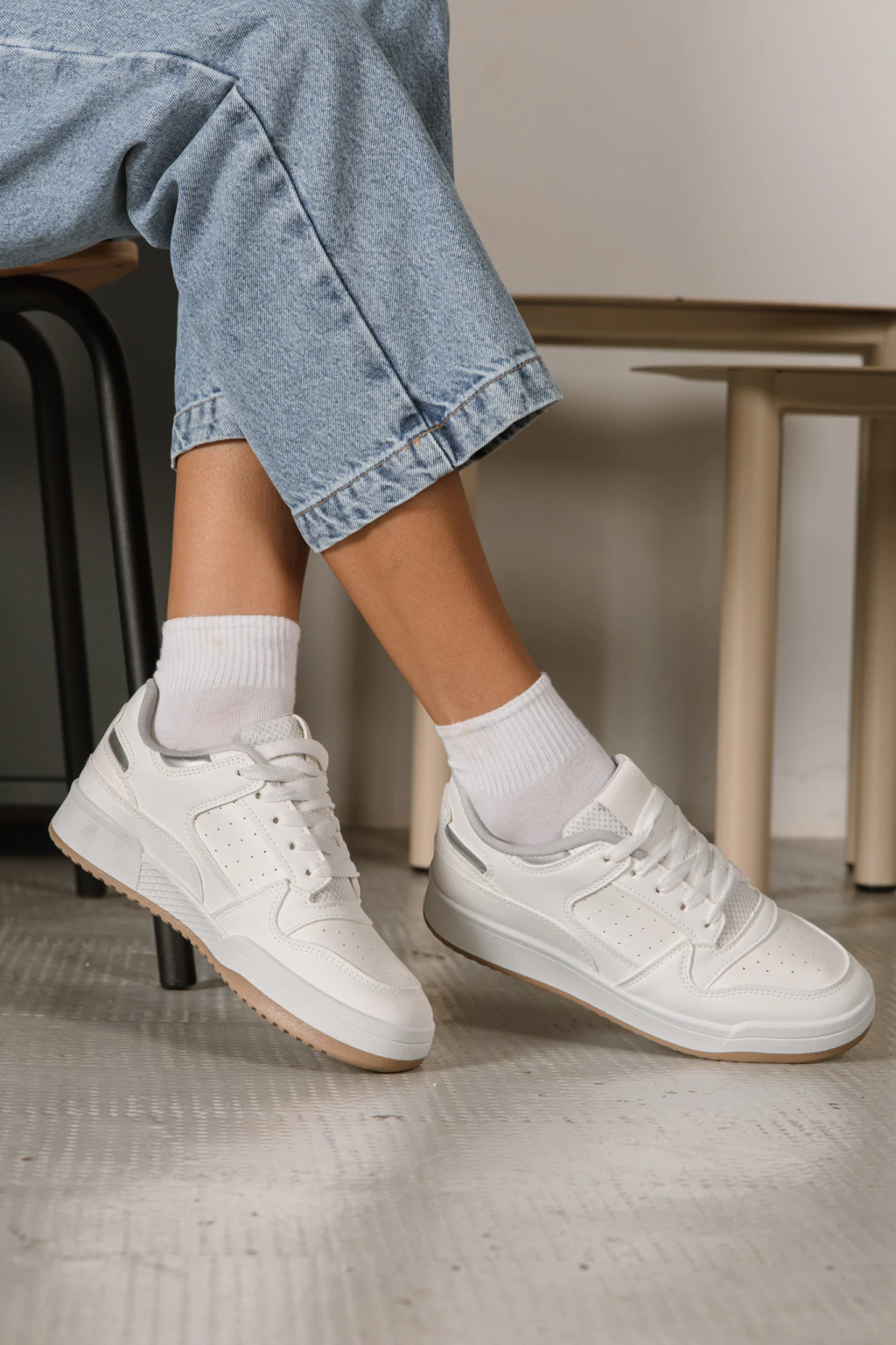Descubrí la zapatilla Aura Blanco, diseñada para quienes buscan estilo y comodidad en su día a día. Confeccionada en cuero sintético de alta calidad y detalles en acabados en plata, esta zapatilla aporta un toque moderno y sofisticado a cualquier look urbano o casual.
